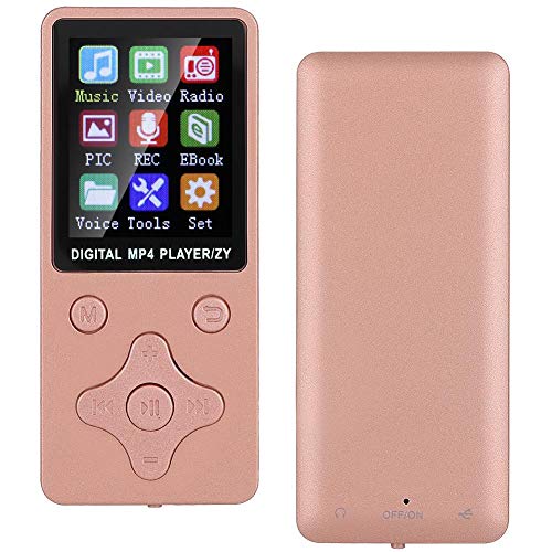 Specification: Garsent 8 GB draagbare MP3-speler, 1,8 inch Bluetooth 4.2 FM-radio, digitale audiospeler MP4-muziekspeler met luidspreker, dicteerapparaat, hoofdtelefoon, ondersteuning tot 32 GB (roségoud)