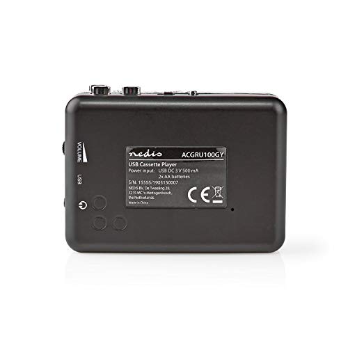 Specification: Nedis Nedis – Draagbare USB Cassette-to-MP3 Converter – Cassettes omzetten naar MP3-formaat – Met USB-Kabel en software – 2x AA / LR6 0.55 m Grijs