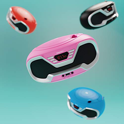 Oakcastle CD200 Draagbare CD-speler Boombox met Bluetooth & FM-radio, 3,5 mm AUX-hoofdtelefoonaansluiting en USB-ingang, voeding en batterijmuzieksysteem voor volwassenen en kinderen met stereoluidsprekers (roze)