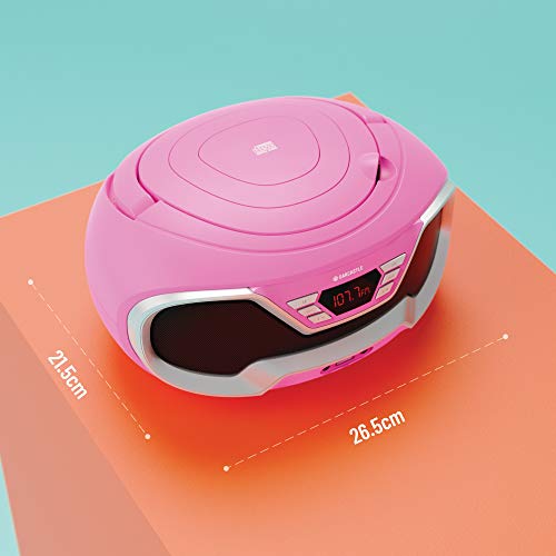 Specification: Oakcastle CD200 Draagbare CD-speler Boombox met Bluetooth & FM-radio, 3,5 mm AUX-hoofdtelefoonaansluiting en USB-ingang, voeding en batterijmuzieksysteem voor volwassenen en kinderen met stereoluidsprekers (roze)