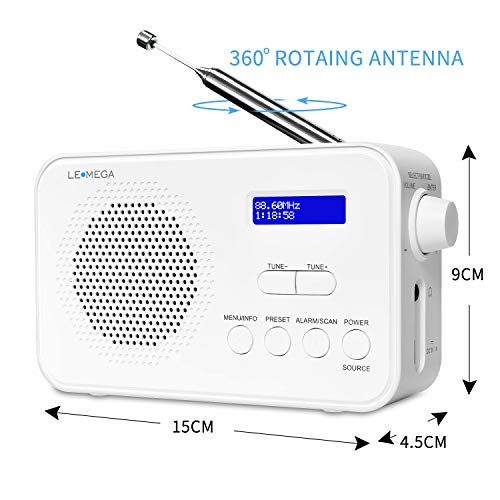 【Extra functies】 – 360 graden roterende telescopische antenne biedt de beste signaalontvangst in zijn klasse. LCD geeft radiogegevens weer, 20 Pre-sets slaan 20 favoriete radiostations op, met eenvoudig te gebruiken knop voor het oproepen van stations, geleverd met een USB-oplaadkabel. Verschillende afwerkingen, waaronder zwart/wit/roze/walnoothout beschikbaar.