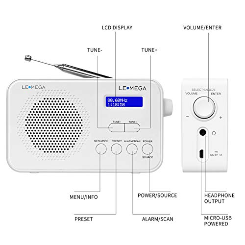 Specification: LEMEGA PR2 Draagbare DAB/DAB+ en FM Digitale Radio, Draagbare Digit Radio, Personal Pocket DAB Radio, Wekker, 40 Voorkeuzestations, Koptelefoon-Out, Batterijen en Netvoeding – Wit