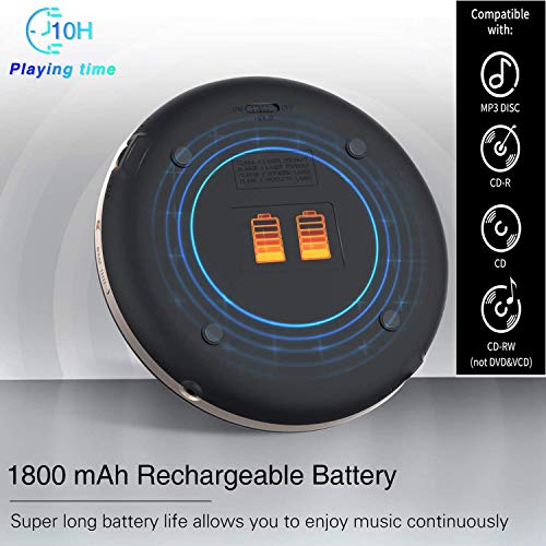 1800 mAh oplaadbare batterij] — De draagbare cd-speler wordt geleverd met een 1800 mh lithiumbatterij die ongeveer 10 uur stroom levert na volledig opgeladen en afspelen op gemiddeld volume. Geen AA-batterijen of een constante externe stroombron nodig. Inclusief USB-kabel laadt hem volledig op in ongeveer 3 uur. Draagbaar en handig, overal mee naartoe te nemen.
