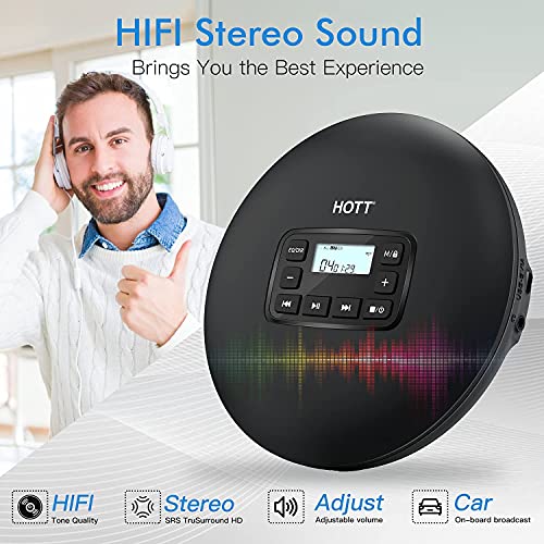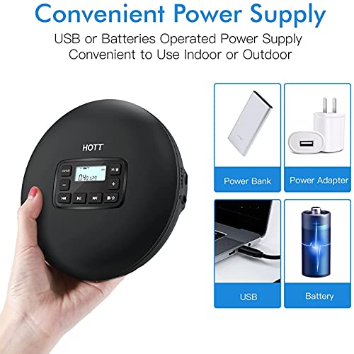 Specification: Draagbare CD-speler,HOTT Kleine Walkman CD-speler met Stereo Hoofdtelefoon USB-kabel LED Elektronische Skip Protection Anti-Shock Functie, Persoonlijke Compact Disc Muziekspeler Ondersteuning MP3, CD-R, CD-RW