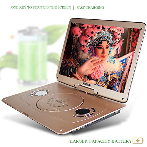 18 inch draagbare dvd-speler, met HDMI-ingang/uitgang, ingebouwde oplaadbare batterij Ondersteuning 1080P MP4-video, AV-uitgang/ingang, USB/SD-weergave,Gold