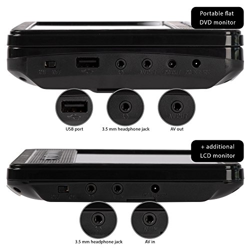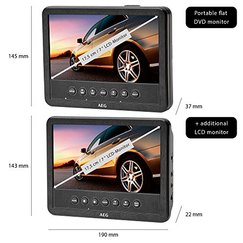 Specification: AEG Draagbare DVD-speler DVD 4555, 2x 17,8 cm (7 inch) LCD-monitor, USB-poort, kaartsleuf, afstandsbediening, zwart