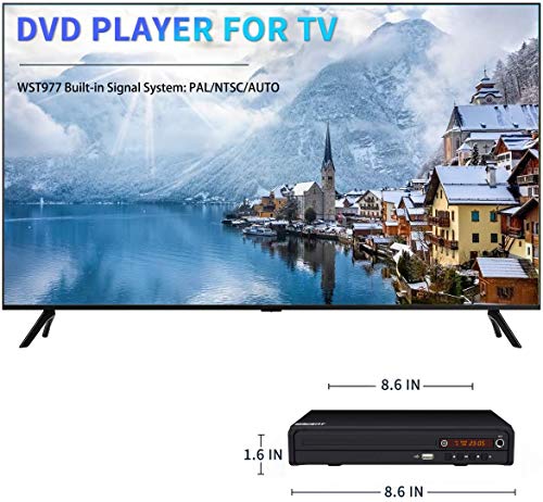 【Compact design】Deze mini-dvd-speler is slechts 8,9 x 7,5 x 1,8 inch. Bedien de dvd-speler en de instellingen met de meegeleverde afstandsbediening. Batterijen niet bij de levering inbegrepen
